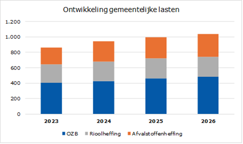 In de grafiek hieronder is te zien hoe de totale gemeentelijke lasten zijn veranderd de afgelopen jaren.